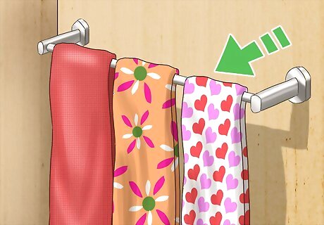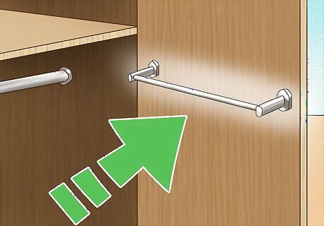 Install towel bars on the back of your closet door. If you're short on space, pick up a few simple towel bars from a home improvement store and install them on the back wall of your closet or on the back of your closet door. Follow the included instructions for installation, since the process is the same regardless of where you install them! Be sure to measure your space before purchasing your towel bars.