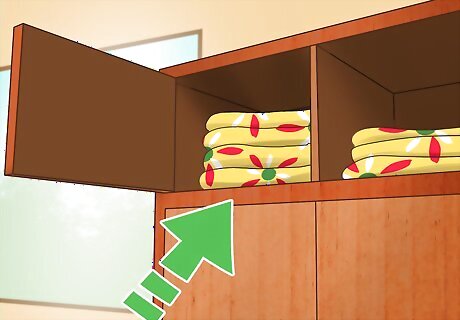 Choose a storage area out of direct sunlight. The sun’s rays discolor your scarves and even damage some kinds of materials. Finding a space that's protected from direct sunlight is especially important if you're storing your scarves in the long-term. A high shelf or upper rack in your closet is a great option. Storage bins and drawers can also keep your scarves out of the way. Make sure the space is out of reach for cats, dogs, and small children to prevent accidental damage to your collection.