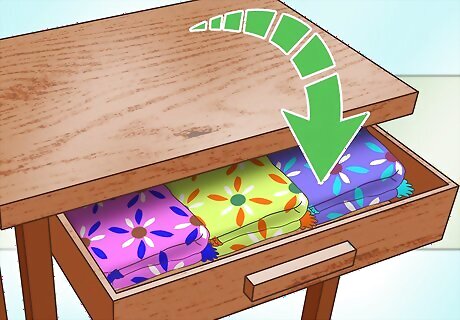 Roll or fold your scarves and tuck them into a drawer. If you have an entire drawer you can dedicate to scarves, this is an ideal storage idea. Casual scarves can be rolled or folded, then stored next to each other in the drawer. Organize them neatly so you can find the scarf you want quickly and easily! Special items such as silk or pashmina scarves should be neatly folded to protect from wrinkles.