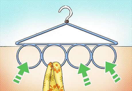 Use a hanging storage solution to display and access your scarves easily. If you wear scarves frequently, hanging solutions allow you to put your hands on the one you want quickly and easily. Many hanging solutions also include an element of display, so if you have a really cool scarf collection, consider hanging storage! Hanging storage is also best if you want to keep your scarves from getting wrinkled.