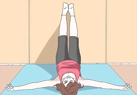 Stretch your hamstrings to support your back and core. Lay on the floor facing a wall, and place your feet up the wall until your legs are laying flat against the wall. Keep your hips flat against the floor and breathe deeply. Hold for 20 to 30 seconds, then release. If you have difficulty doing both legs at once, you can do one leg at a time using a doorway. Raise one leg against the wall, and keep the other straight out on the floor, through the door. Hold for 20 to 30 seconds, then do the other side. Tight or shortened hamstrings place additional stress on your lower back, and can lead to problems such as a herniated disc in the lumbar region of your spine.