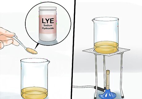 Obtain the necessary materials. To make a detergent, you need fat and sodium hydroxide. Fats can be obtained from animals in the form of tallow and/or plants such as coconut or palm oil. Sodium hydroxide is also known as lye and is an essential component for making soap. Sodium hydroxide, or lye, is extremely caustic and must be handled properly. Wearing gloves, goggles, and long sleeves is essential while making detergents.