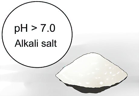Study alkali salts. An alkali salt is a soluble, basic (pH > 7.0) portion of an alkali metal such as sodium or potassium. Alkali salts are able to react with and neutralize acids due to their basic chemistry. Sodium hydroxide and potassium hydroxide are the two most common salts used to make soaps and detergents. The alkali salt attaches to the carboxylic acid group to form carboxylate. The entire molecule of carboxylate and fatty acid is soap. These chemicals are very caustic and can cause severe injury if handled improperly. Sodium hydroxide is used to make harder soaps, while potassium hydroxide is used to make softer, liquid soaps. In water, the alkali salt is more soluble than the fatty acid is.
