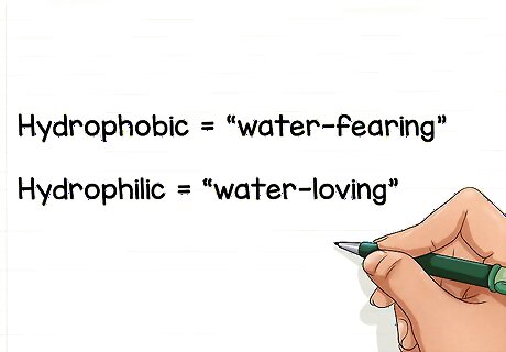 Use memory aids. The most important concept related to the chemistry of detergents is the fact that they have both a hydrophobic end and a hydrophilic end. To remember which part does what, remember that a phobia is a fear of something. Since hydro, refers to water, hydrophobic means “water-fearing.” If you can remember what hydrophobic is, you just have to keep in mind that hydrophilic is the opposite and means “water-loving.”