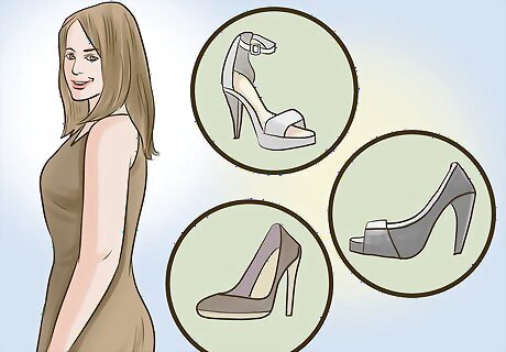 Go for gray shades. When selecting shoes, know that khaki tends to pair well with gray. If you want a shade that will easily match with your khakis, go for gray shoes. Something like light gray heels will compliment a khaki dress well. However, if you don't love gray, you can go for other neutral shades. While gray is generally a good color with khaki, it is not the only option. Blacks and browns can also work with khaki.