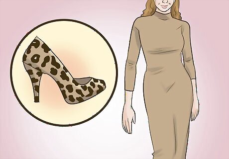 Add a leopard pattern for a night out. If you want something a little bit different, try leopard-patterned shoes. While the look is a little bold, it can be perfect to add some flare to khakis. Leopard pattern shoes may work best for a more dramatic, form-fitted dress. They may look a little off when paired with something like a casual off-the-shoulder khaki dress.