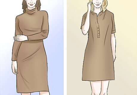 Look for a button down dress for a formal occasion. Khaki dresses can actually be quite formal. If you want to wear khaki for a more formal occasion, opt for a button down khaki dress. This can work great for the office, especially when paired with something like tights or panty hose.