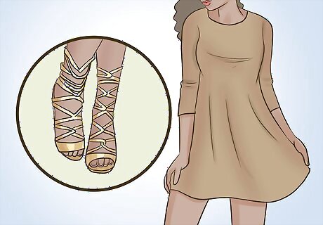 Wear gladiator sandals with khaki. If you want a more casual look, go for gladiator sandals. They can pair well with looser, more casual khaki outfits. They can also work for a more casual day in the office. Gladiator sandals add some style to your outfit without being too formal. If you want something very casual, try just wearing plain sandals with khaki. This can work great for something like a casual afternoon lunch.