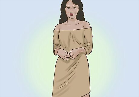 Opt for an off-the-shoulder dress for a casual look. If you want something more casual, look for an off-the-shoulder khaki dress. A dress that falls off one or both shoulders will have a more casual, laid back feel. You will still be able to feel slightly dressy without feeling too formal or fancy. An off-the-shoulder dress would work great for a casual get-together with friends or something like casual Friday at work.