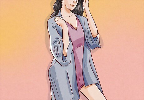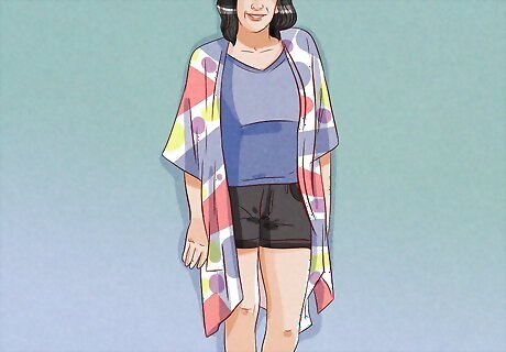 Wear your kimono over your swimsuit as a stylish beach accessory. This is a perfect way to cover up on your way to the beach and is a great means of sun protection. Opt for a kimono robe that breathes easily. Cotton, linen, silk, and rayon are great fabrics for hot days. Wear a kimono that matches your swimsuit to create a fun, on-trend look.