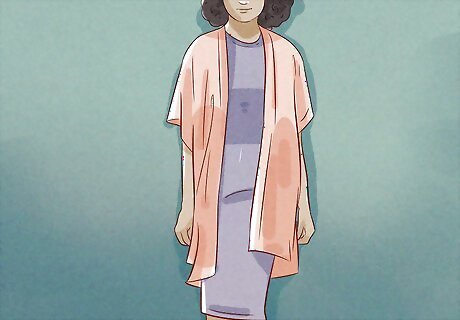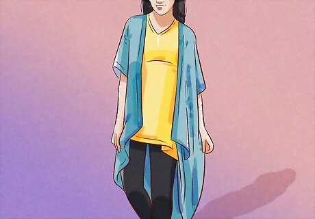 Wear a long kimono outfit with shorts or a skirt to give a cape look. This is a great way to add an unusual layer to your outfit and will really accentuate your kimono. To draw extra attention to the kimono, choose a bold print, such as bright flowers or geometric patterns. For a luxurious feeling kimono, opt for velvet or silk fabric.