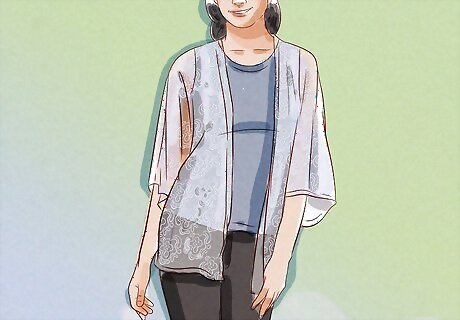 Add a lace kimono to bring a boho look to your outfit. A lace kimono jacket is a perfect addition to a summer outfit. For a glamorous look, opt for a black or white lace kimono. If you prefer a more fun and casual look, choose a colourful lace kimono. Be careful not to snag your fingernails in the lace, as these kimonos are delicate and tend to rip easily.