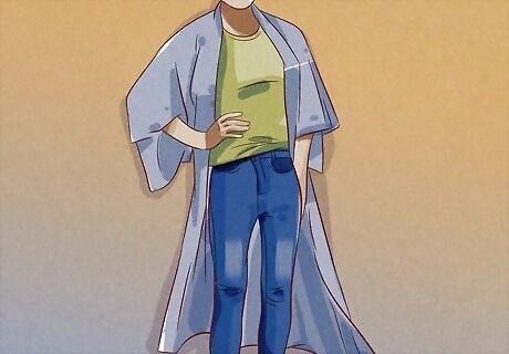 Pair a kimono jacket with slim-fit jeans for a tailored look. This combination is incredibly versatile, and can be worn to work, as evening wear, or casually. Choose a pair of skinny jeans or tailored jeans, and wear a loose-fitting kimono jacket over the top. To make the outfit look more formal, wear a kimono jacket that falls below your hips. Wear heels with this outfit to dress it up.