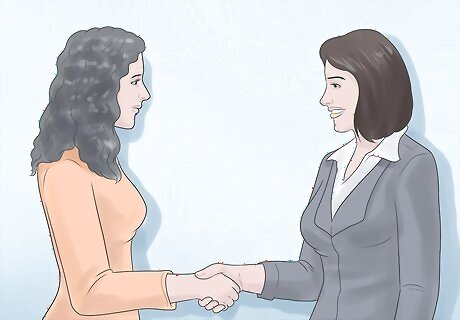 Shake hands and repeat names when you meet the interviewers. Be personable as soon as you step into the interview setting. Give firm handshakes and repeat someone’s name when they introduce themselves to help you remember their names. Recalling the interviewers’ names later will show you have good attention to detail and care about recognizing someone by name. You should also hand over the folder of documents to the interviewers for review and show off a big smile and a genuine deposition. Though you may feel nervous, try to be yourself and let your personality shine through.
