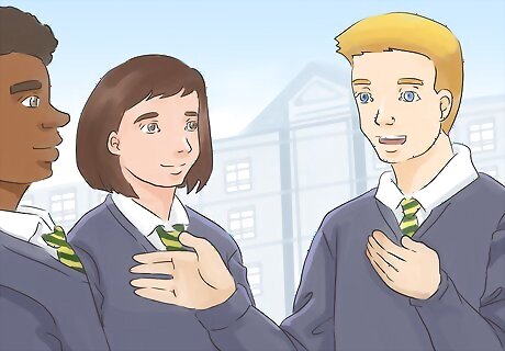 Get to know a few students. You may like to know a few people from day one to have some conversations with. It is not necessary to have friends on the first day, but just talking to other people will be good for you instead of being alone in a corner. If the students seem hostile to you when you meet them, start to walk away. If they are in a group and they all behave in a menacing way, do not talk to them, as you may easily get bullied or even make friends with bullies. Present yourself as a kind, friendly person. Otherwise, people may not feel so comfortable approaching you.