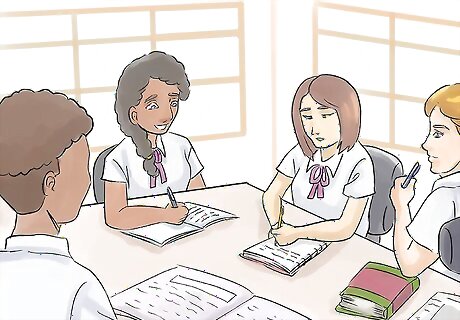 Work with friends in a study group. It might be easier for you to work with friends so you can help each other and do work more quickly. Make sure you have permission and a place to meet up when working with friends.