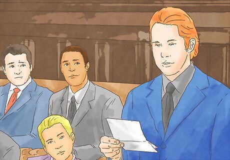 Make a closing argument. After all evidence has been submitted, you will be able to make a closing argument. The purpose of the argument is to draw together all of the evidence and show how it supports your case. Be sure to remind the jury of any exhibits you used. For example, if you have a full-page commercial advertisement with your face plastered on it, then be sure to hold it up to the jury during your closing argument.
