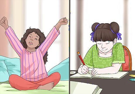 Set up a routine. Consider creating a routine for your child to reduce stress in their life. Routine will help your child get used to responsibilities and know what to expect so that they don't get overwhelmed. Chaos and instability may make their bipolar disorder worse. An established routine can help your child avoid stress and cope with daily life. Doing the same thing at the same time every day gives them a sense of security in knowing what comes next. The routine should include when your child wakes up, mealtimes, study/homework time, chores, playtime, and when they go to bed. Most children with bipolar disorder function best in a structured routine. Many also have short attention spans. Be patient and ready to move on to another activity when they are.