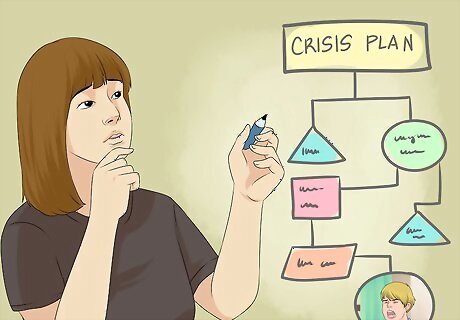 Create a crisis plan. Create a crisis plan for your child ahead of time in case your child experiences a crisis. You may want to create one with their doctor or therapist and share it with other family members or teachers at school. The crisis plan should outline the actions a caregiver should follow should your child experience a crisis situation in which they may harm themselves or someone else. Provide a set of numbers to call when a crisis happens and list the address of a local hospital.