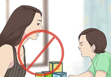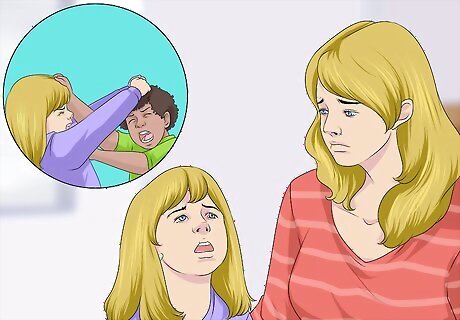 Be prepared for destructive behaviors. When experiencing an episode, your child may become violent or aggressive. They may harm themselves or others. Form a plan before your child has an episode so you'll know to react when your child behaves this way. Talk to your child's doctor or therapist about how to act when your child behaves in a destructive manner. Some examples: For example, if your child starts banging their head against the wall, you might place pillows beneath them. If they start to become violent towards someone else, you might bring them into a quiet room so they can calm down. If your child starts to scratch themselves purposely, you might bring them putty to help them relax and calm down.