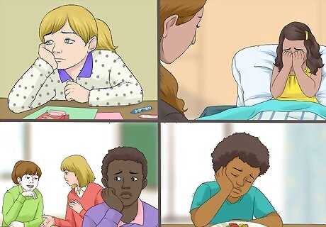 Recognize the signs of a depressive episode. A depressive episode is the opposite of a manic one. This episode usually includes sadness and gloomy emotions and behavior. Symptoms include: Sleeping too much or feeling tired a lot Losing interest in hobbies, activities, and/or goals Feeling negative and low Withdrawing from friends Lack of energy Trouble focusing Changes in appetite, like eating too much or too little