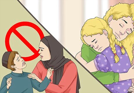 Offer plenty of emotional support. When your child is having a rough time, your words play a big role on how they'll react. Avoid covering up their feelings and acting like their feelings are easy to cope with. This will end up making them feel worse, as if they're emotions really don't matter. Be aware of saying statements, such as "It's not so bad;" "Be positive;" "You're over-reacting. It's not that bad;" or "It's okay. Be tough." Instead, validate their feelings and show that you do care. Say things like, "You're not alone. I'm right here for you," or, "I may not be able to understand how you exactly feel, but I'm always here to listen and help you." You can also say, "You are very important to me and your life matters a lot to me," and, "I know it doesn't feel like it now, but the way you feel will change."