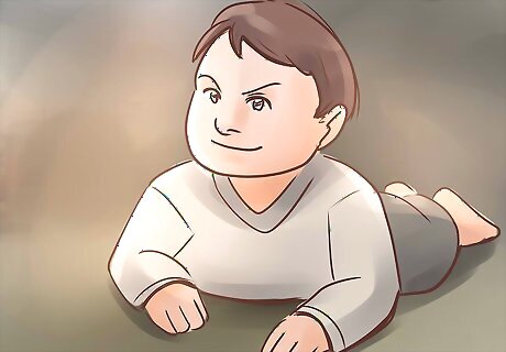 Be active with your baby. Babies are naturally active and you can boost your baby’s physical development by being active with them. When you see your baby being active, do things that encourage them to continue their activity. Lay down on the floor or bed with your baby and provide toys for them to look for, grab at, and move towards. For example, you can encourage your baby to move their arms by holding a brightly colored toy out to them. If your baby is starting to roll over or crawl, lie or sit close to them on the floor and let them use you to pull themself up or to stop themselves from moving once they start rolling.
