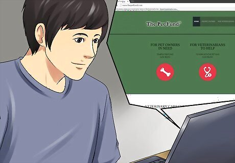 Apply for dog welfare. If you are thinking of rehoming your dog because of financial problems, there are different charities to help you. They may be able to help you with vet bills or food bills. There are also dog food banks that may be able to give you food for your dog if you can't afford it and your dog is in genuine need. If you need help with vet bills, try the Pet Fund, which is a charity that helps cover dog costs. You can also take out a credit card specifically for dog healthcare, such as Care Credit. This could help your dog's treatment be easier to manage over time. The Humane Society also has an extensive list of organizations that can help you with your dog costs.