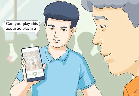 Change up the music. If your host isn't playing any music during the party or the guests don't seem to like what's on, ask the host if you can change things up. Try to put something on that's a good fit for the type of party you're attending to help get things going again. Keep some of these tips in mind if you find yourself playing DJ at a boring party: If the party is a dinner party, you'll want to pick softer music with slower rhythms. If it's time to dance, pick some tunes that have a great beat and turn up the volume at bit. If the party is mostly drinks and conversation, try picking some smooth music styles like blues or light jazz.