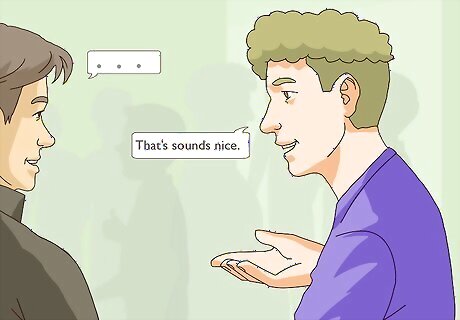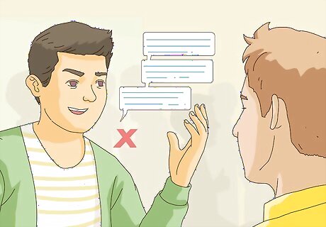 Avoid bad conversational habits. There are some conversational habits that can make a person lose interest in whatever it is you are saying. If a person gets bored or feels like she can't contribute to the conversation, she will likely look for something else to do at the party. Keep some of these tips in mind to keep a conversation going and avoid boredom at a lackluster party: Try not to drone on or speak in a monotone voice. Allow your personality to shine through in your conversation and express yourself. Avoid ranting or dominating the conversation. Always let the other person have a turn to speak. Don't interrupt. Talking too abstractly or too generally can cause people to tune out. Don't talk exclusively about yourself.