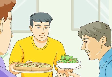 Try making fun dishes out of the appetizers. If the party seems to have died down, you can keep yourself busy by playing chef. Head over to the appetizer table, grab a plate and get creative. Have fun trying to mix and match the appetizers to make new dishes. You might even try sharing some of your best creations with other party goers.