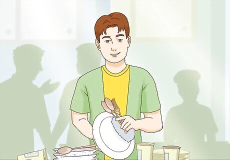 Start cleaning up. If the party is coming to a close or people seem ready to leave, you can start by cleaning up your tableware or other garbage you notice laying around. Rising from the table or starting to clean up can be a clear signal that you and the other guests are ready to leave. Cleaning up is a polite way to help the host and to excuse yourself or others from the party. Start by cleaning up your own area or tableware. If you notice loose cups, bottles or other party implements, try tidying them up.
