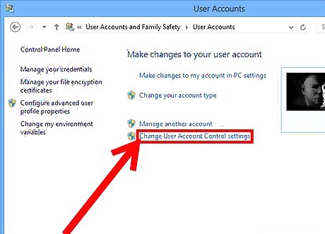 Click the "Change User Account Control settings" link.