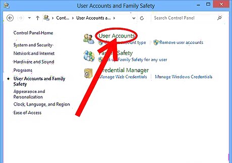 Open your Control Panel on your Desktop and select User Accounts & Family Safety.
