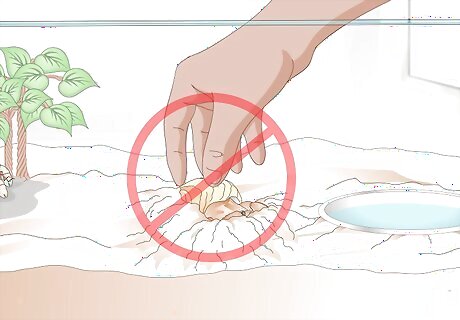Leave your crab alone. One of the best things you can do for your molting hermit crab is to leave it alone. Handling the crab, digging it up, or otherwise disturbing it as it goes through the molting process could actually cause substantial harm to the crab. It’s best to keep the molting environment as close as possible to the one they would have in nature, which means leaving them alone to molt. If you think for some reason that another crab might be disturbing or bothering the buried molting crab, you can carefully dig it up to check on its well-being.