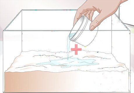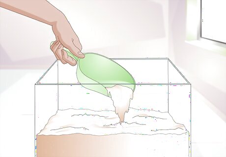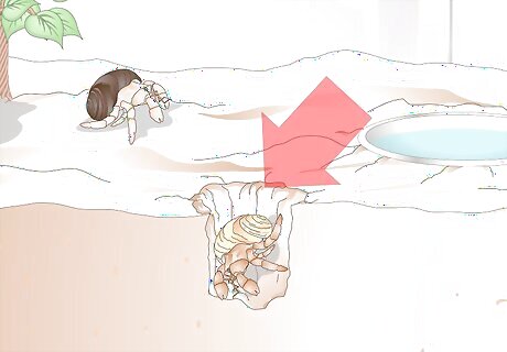 Use play sand to line the bottom. A hermit crab must be completely buried in order to go through the molting process. Your tank should have a minimum of 6 inches of sand. This will provide an adequate amount of depth and space for your molting crab to bury itself. Play sand is your best option, since it’s the right texture and consistency for the crab.
