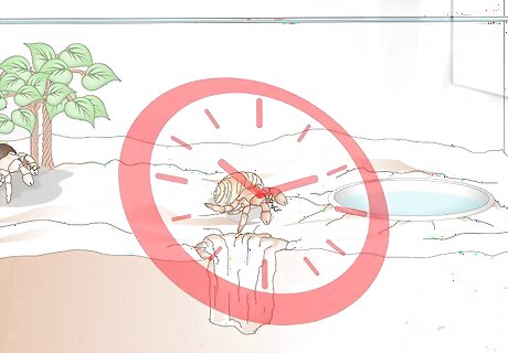 Make sure the crab has darkness. In order to go through the molting process, hermit crabs need darkness. This is why they bury themselves in the sand when they molt. If the crab stays on the surface and doesn’t bury itself, or if it doesn’t bury itself completely, cover the tank with a light cloth to provide some extra darkness. Darkness is what helps trigger the crab’s production of a molting hormone that they need to successfully go through the molting process. Without adequate darkness, they may have difficulty molting.