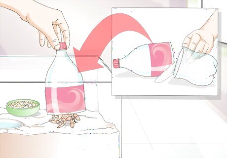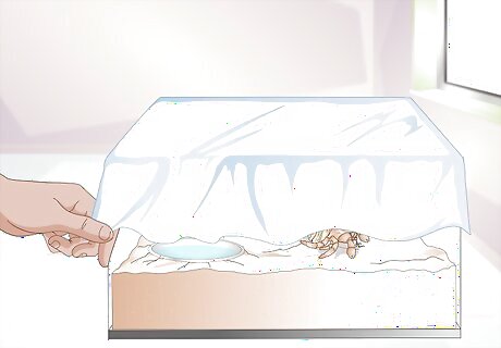 Protect a molting crab that doesn’t bury itself. If you do have a hermit crab that doesn’t bury itself and begins to molt, it’s important to protect the crab, and to help simulate proper molting conditions. Cut the top half off of a regular 2 liter soda bottle. Rinse the bottle clean. With the lid of the bottle pointing upwards, cover the crab with the bottle and press the bottom down into the sand a bit. You can then cover the bottle, or the whole tank, with a cloth for darkness.