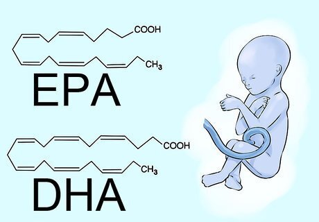 Know about the important omega-3 fatty acids in fish oil. Despite the controversy around fish oil supplements, it's undisputed that fish oil is rich in EPA (eicosapentaenoic acid) and DHA (docosahexaenoic acid), and also that these fatty acids are essential to your body's function. DHA supports the nervous system and thus is particularly crucial for the developing brains and eyes of babies in the womb. Though the role of EPA and DHA in cognitive development is undisputed, studies are inconclusive as to the ability of fish oil supplements to deliver these omega-3's effectively to the pregnant person and their fetus. Research suggests that you need 200 mg of DHA every day to support the growth of your baby's cognitive and visual systems.