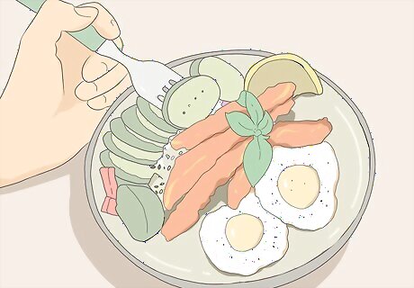 Eat a healthy, filling breakfast the morning of the test. Try to wake up at least 2 hours before you have to leave for the testing center so you have plenty of time to shower and eat a healthy breakfast. This also gives you time to wake up naturally, so you don't still feel sleepy when you start the test. Use your own best judgment when planning your morning. If you know you're not a "morning person," for example, you might want to take a bath or shower the night before so you can get a little more rest. If you don't normally eat in the morning, try to at least eat something, like a granola bar or a piece of fruit, before the test. The test takes all morning and you'll only get one break. If you're hungry during the test, you'll have a hard time concentrating.