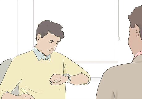 Arrive at the testing center at least 15 minutes early. The test starts promptly at the time listed on your admission ticket. Show up early so the test supervisor has time to check your ID and get you set up to take the test. The test supervisor will go through some basic ground rules before the test officially starts. Give yourself a little more time if the testing center is in an unfamiliar area, so you have the time to find it and figure out where to park if you drove yourself. Once you're there, take a few deep breaths and try to remain calm. Acknowledge the prep work you've done and have confidence in yourself.