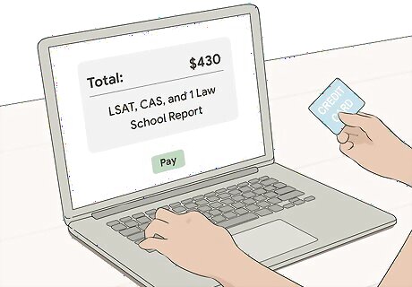 Pay the fee for the package of your choice. If you haven't been granted a fee waiver, you'll need to pay your fee when you register. You can always add on different services or reports through your LSAC account later. As of 2019, LSAC fees are: One LSAT: $200 Credential Assembly Service (CAS): $195. With CAS, you send all your transcripts, letters of recommendation, and other documents to the LSAC. The LSAC then sends them out together as a package to the schools of your choice. Law School Report: $45 LSAT, CAS, and 1 Law School Report: $430 LSAT, CAS, and 6 Law School Reports: $650
