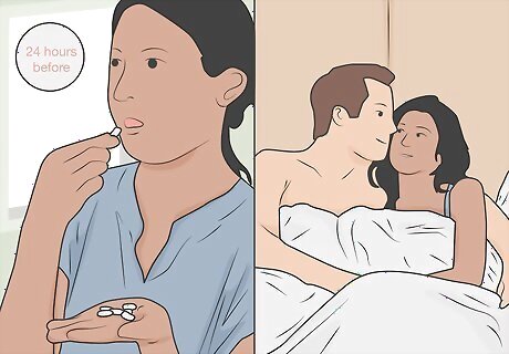 Take Valacyclovir before having intercourse with a sexual partner. If you have genital herpes, you run the risk of transmitting herpes to any sexual partners who touch your groin or buttocks. To prevent the transmission of herpes, take Valtrex 24 hours before engaging in vaginal, oral, or anal intercourse to protect your partner from the virus. Taking Valtrex will not prevent you from passing herpes on to a sexual partner. However, it can get rid of unwanted sores prior to sexual activity and decrease the chances of passing on the virus. Even if you don’t see a typical rash, you can still spread genital herpes though it is less likely. If you’re sleeping with a new sexual partner, tell them that you have an STI before intercourse. While this can be an awkward or embarrassing conversation, it’s important to be upfront with your partners. Although genital herpes can cause discomfort, it’s still entirely possible to have a happy, healthy sex life if you have herpes.
