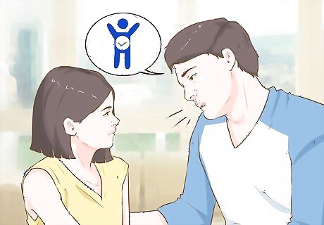 Practice healthy eating habits with your child. Help encourage your child's overall health by teaching them proper nutrition. Encourage them to choose fruits, vegetables, and lean protein. Don't focus on the scale, though. Instead, focus on portion sizes by doing things like reading food labels with them, and encourage them to stop eating when they feel full. Try to avoid demonizing foods like sodas and candies. Instead, be positive about foods like fresh produce and whole grains. Teach your children that sweets are alright in moderation, but that other foods, like veggies, can be eaten more often. Keep healthy food in the house. Kids are not going to make healthy choices if they do not have access to tasty, nutritious options. Allow kids to be active in their meals. Give them options and let them pick what they want to eat, and allow them to help you in cooking process.