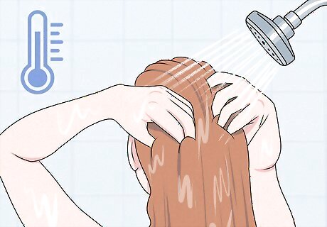 Rinse with cool or cold water. Cold water seals the hair cuticle, which will prevent each strand from losing valuable moisture and create a sleeker, shinier look. Enjoy a warm—not hot—shower and rinse out your shampoo and conditioner with cool or cold water.