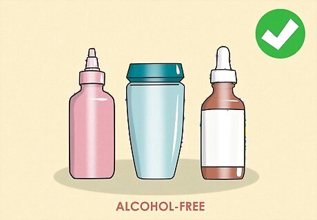 Switch to alcohol-free products. Most hair sprays and mousses have a high alcohol content, which can cause the cuticle to swell up. Alcohol can also dry out your hair, making it look poofy and eventually leading to breakage. Try using alcohol-free products that work to reduce frizz, such as creams and serums.