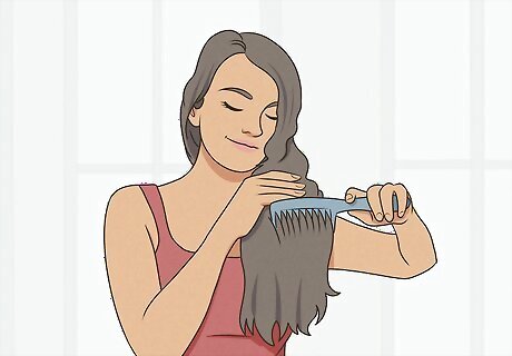 Gently detangle your hair with a wide-tooth comb. If you have curly hair, it’s best to comb through it in the shower after applying conditioner. If your hair is straight, you can comb through it when you get out of the shower. Either way, use a wide-tooth comb, begin at the ends of your hair, and work your way up to the roots. Avoid brushing wet hair if your hair is straight, as this can cause breakage.