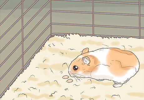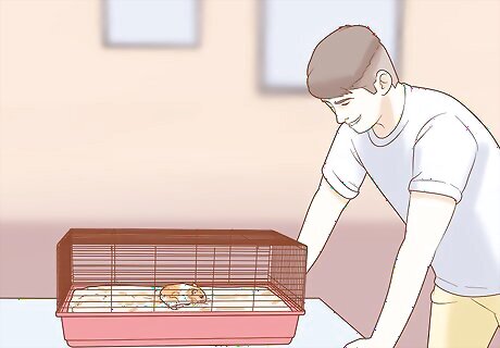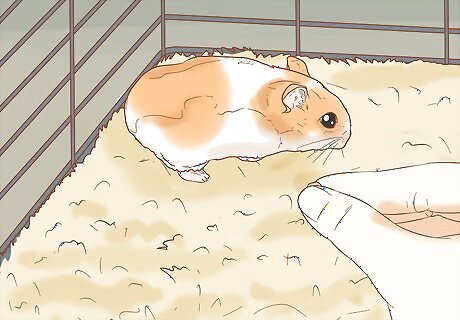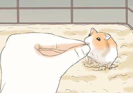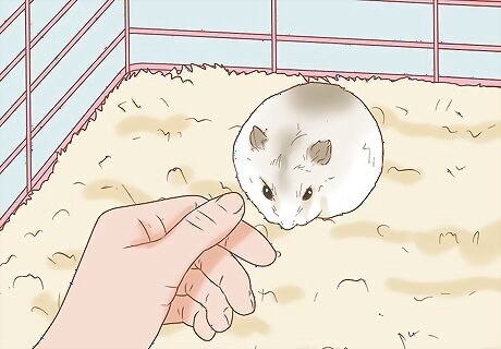 Put the treat on the cage floor if it won't take it from your hand. It may take a few tries before your hamster will eat the treat directly from your hand. After it sniffs your hand, let it sniff the treat and then gently place the treat on the cage floor a few inches away from the hamster.