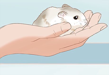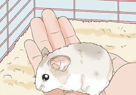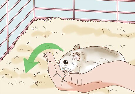 Put your hands in the cage and let your hamster smell them. Move slowly to avoid startling the hamster. Hold your cupped hands toward the hamster and let it sniff them. If it doesn't climb into your hands, you can try nudging it a little. If your hamster is growling or showing their teeth, wait until they’ve stopped displaying these behaviors.
