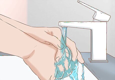 Wash your hands thoroughly with unscented soap. You’ll want to wait until your hamster has begun to venture out of its nest and explore on its own, and when your hamster appears relaxed, such as when it is playing or grooming themselves. Then scrub your hands thoroughly with soap and water.